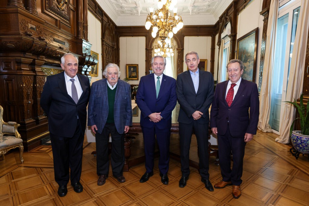 El presidente Alberto Fernández almorzó hoy en la Casa Rasada con los ex presidentes José Luis Rodríguez Zapatero (España), José «Pepe» Mujica (Uruguay), Vinicio Cerezo (Guatemala) y Ernesto Samper (Colombia).