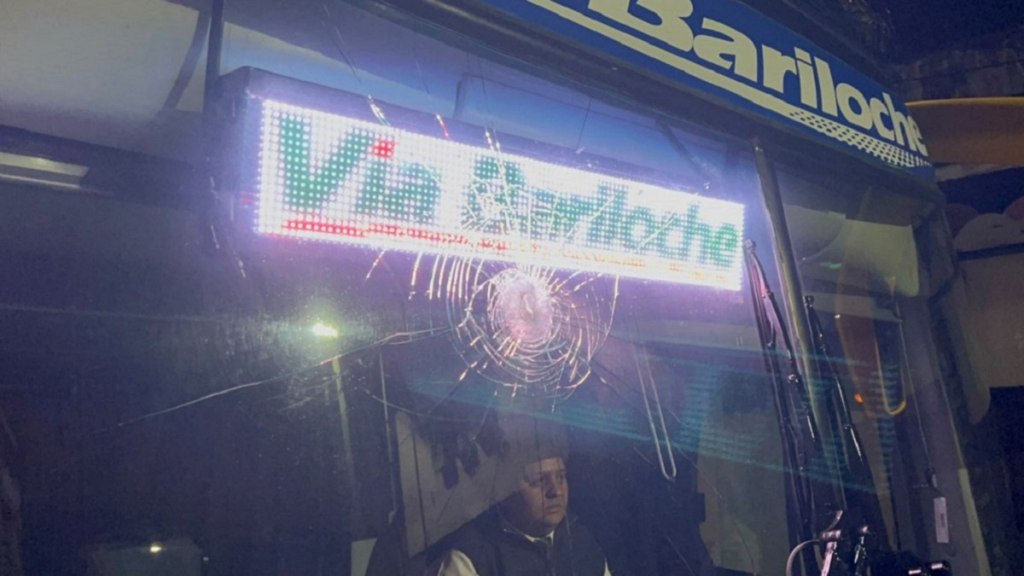 Uno de los objetos contudentes pegó en uno de los vidrios delanteros del micro, pero apenas se astilló ya que es blindado, por lo que no hubo heridos.