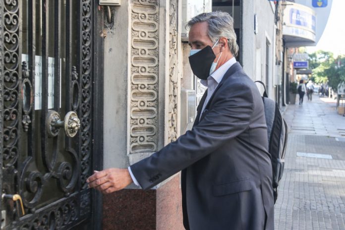 Montevideo, Uruguay, 28 abril 2021 Sociedad. Cnel R Eduardo Ferro es procesado con prisión por crimen de Óscar Tassino. defensores Graciela Figueredo y Emilio Mikolic Foto: Gastón Britos / FocoUy