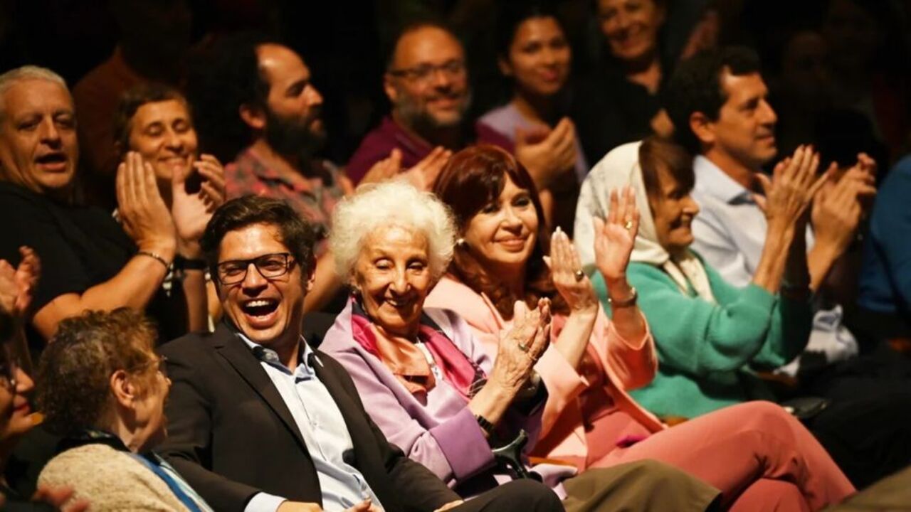 Ambos líderes se saludaron brevemente sin intercambiar palabras, y se sentaron en la primera fila, separados solo por Estela de Carlotto. Si bien era evidente la tensión entre las figuras, la presidenta de Abuelas hizo un esfuerzo por proyectar unidad, levantando los brazos de ambos dirigentes en una imagen simbólica.