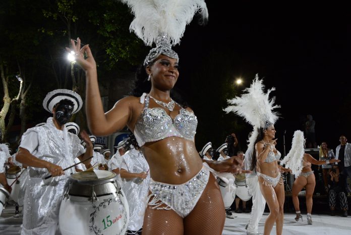 Vedettes, tamborileros, bailarines, bailarinas, porta estandartes, escobilleros, porta banderas, mamas viejas, gramilleros, y demás componentes, se lucieron en la noche del candombe coloniense, representando a las comparsas: Eco de Tambores, Puerto Sauce, Alma Lubola, 5mparsa CCS, Burundí, La 10 de Mayo, Dulces Guerreras, Mozambique, Rosario 250, Lonjas Pichoneras, Rincón de Carmelo, Morenada Lonjas, Colibrí, Caracú Quemao y Lonjas Palmirenses.