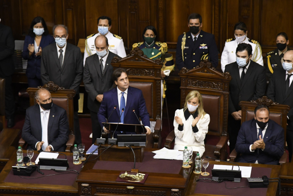 En varias partes de su discurso, también, Lacalle Pou se refirió a la obra pública, uno de los pilares fundamentales del gobierno -además de la inserción internacional a través de acuerdos que vayan más allá del Mercosur- para en lo que queda del período lograr un mayor crecimiento económico. De hecho, el presidente dijo que este año el Estado va a liberar más de US$ 1.200 para inversión pública e infraestructura, y destacó las obras que se harán en las rutas 5, 6 y 8, además de la del puente de Charqueada. Y dijo que está previsto un programa de emisión de bonos por parte de la Corporación Nacional para el Desarrollo para obras planificadas por el Ministerio de Transporte y Obras Públicas.