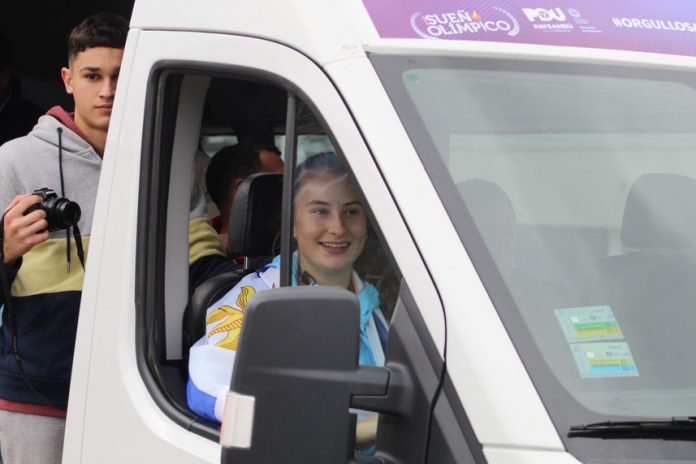 Se realizó una caravana multitudinaria, una de las más grandes que se vieron allí después de la que se hizo por la medalla de plata de Milton Wynants en los Juegos Olímpicos de Sídney 2000. El propio Wynants, que consiguió la última medalla de Uruguay en unos Juegos Olímpicos, la fue a recibir y se infundieron en un abrazo, con felicitación mediante.