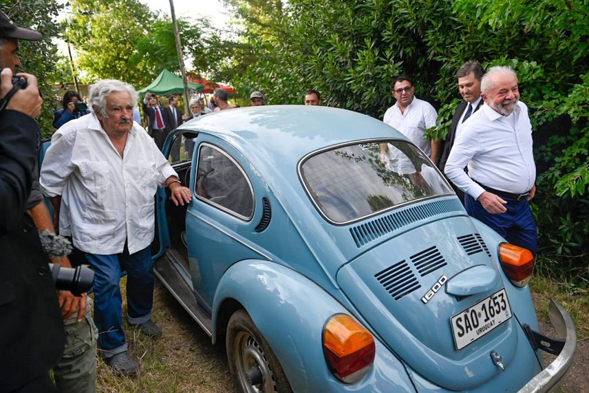 Mujica invitó a Lula a subir a su Fusca celeste, y en el auto dieron un paseo dentro de la chacra.