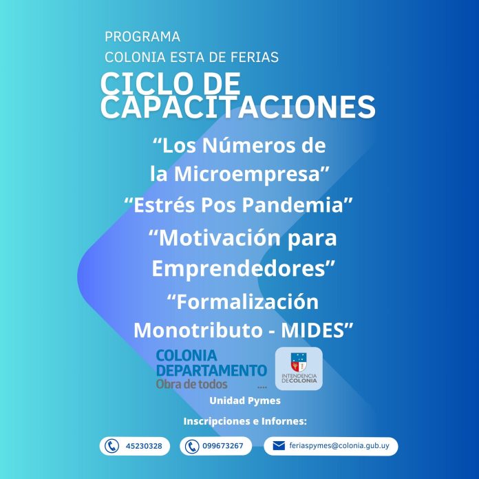 La Intendencia de Colonia a través de la Unidad Pymes y su Programa Colonia Está de Ferias, continúa llevando adelante en distintas localidades un importante ciclo de capacitaciones, del cual pueden participar todos los emprendedores que lo deseen y se destaca que la propuesta es gratuita con inscripción previa.