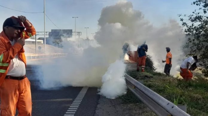 Las fuerzas de seguridad no sólo liberaron el acceso a la terminal, sino que también dispersaron con gases lacrimógenos y balas de goma un corte sobre la avenida Circunvalación, a metros del ingreso a la misma.