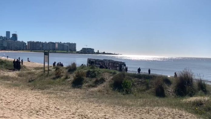 Montevideo: un chofer perdió el control y terminó con el colectivo en la playa